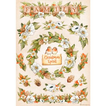 Slámová hedvábí s motivem "Winter Season - White Poinsettia"