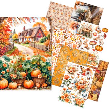 Slámová hedvábí s motivem sortiment "Ahoj podzime", sada 8 ks