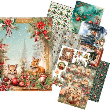 Slámová hedvábí s motivem sortiment "Cosy Christmas", sada 8 ks
