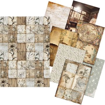 Sada 8 slámových hedvábí s motivem "Carbinet of Curiosities"