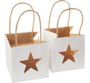 Vánoční papírová taška VBS "Hvězda " v sadě 2 ks o rozměrech cca 12 x 12 x 12 cm a okénko s pevnou plastovou fólií ve tvaru hvězdy o Ø cca 7 cm. Pevná ucha na přenášení mají délku cca 24,5 cm.