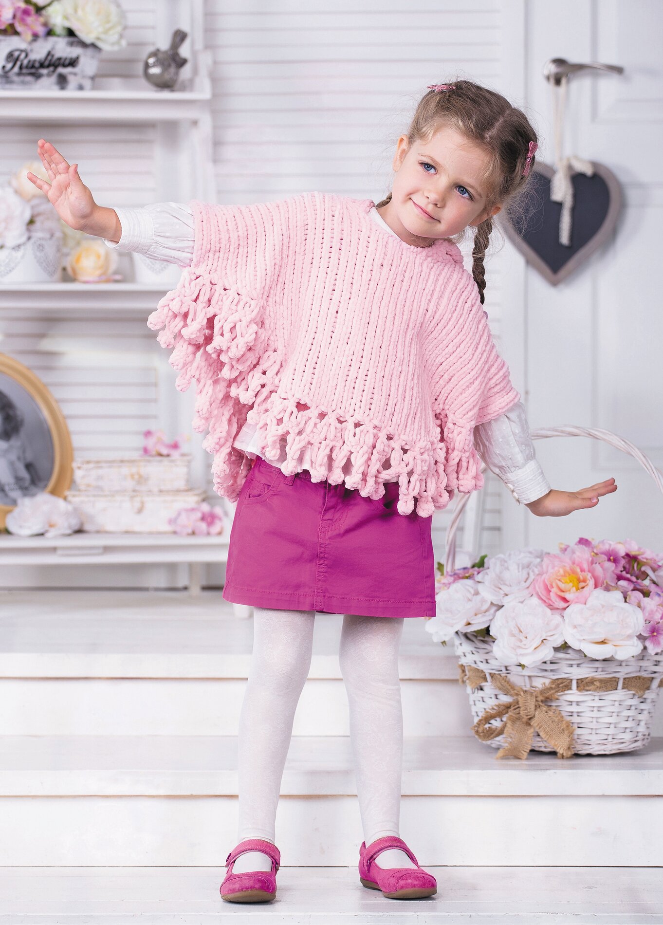 Příjemně měkké dětské pončo s veselými třásněmi se jistě stane novým oblíbeným kouskem oblečení vaší holčičky.