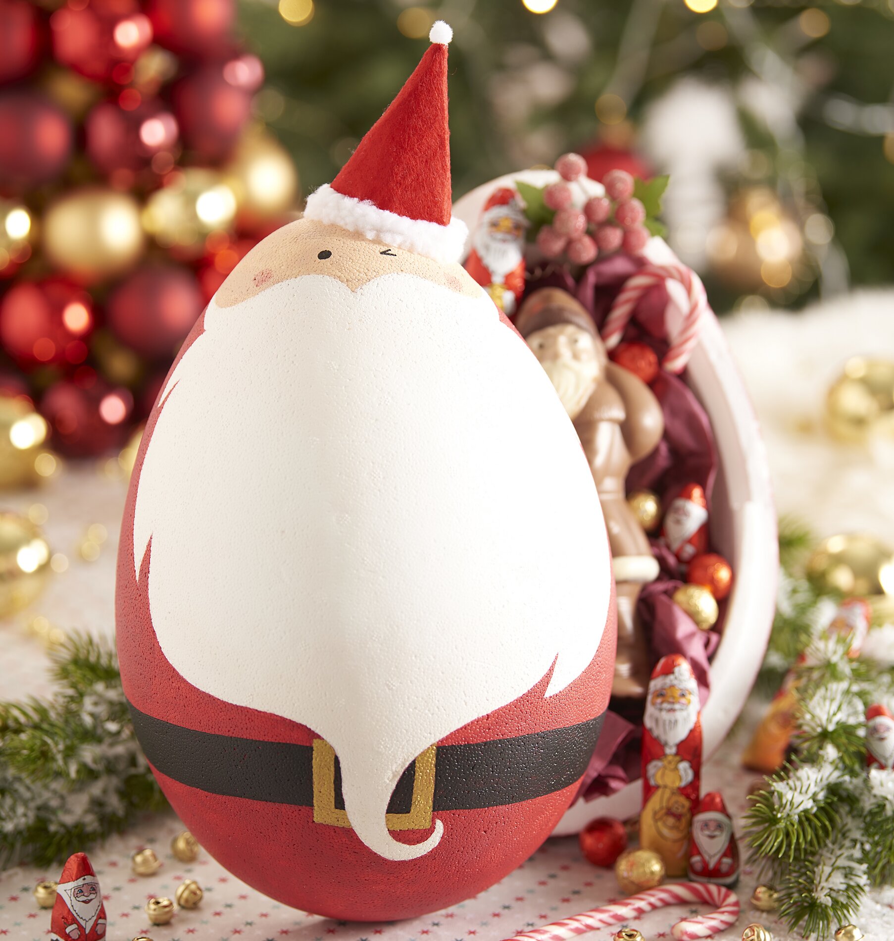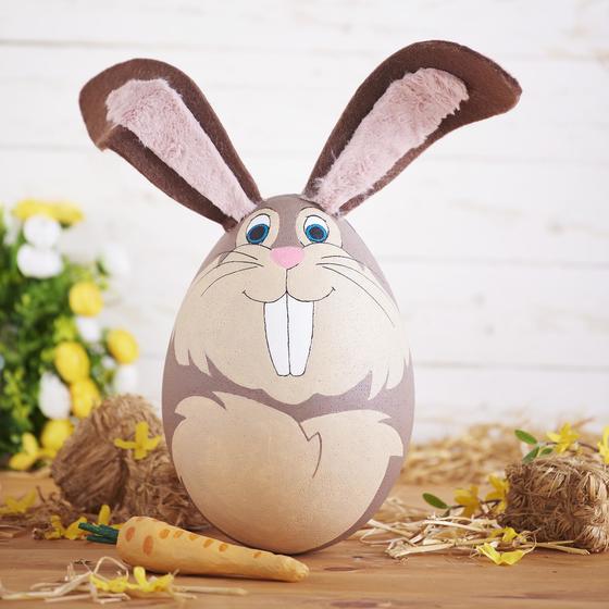 V našem příkladu dekorace jsme vajíčko natřeli řemeslnou barvou jako velikonočního zajíčka nebo Ježíška a pak jsme na něj nalepili uši nebo vánoční čepici.