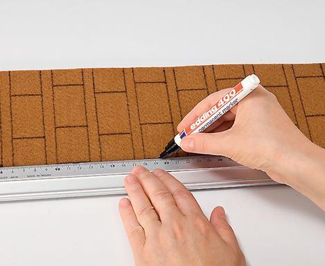 Poté na plsť nakreslete deset 3 cm širokých proužků ve vzdálenosti 1 cm od okraje. Mezi jednotlivými proužky vyznačte 1 cm mezery. Jakmile je to hotovo, ustřihněte pruh plsti 1,5 cm za posledním pruhem.