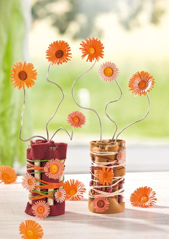 Svazek můžete omotat papírovým drátkem, ozdobným hliníkovým drátkem nebo přírodní rafií a konce dobře zauzlovat nebo stočit. Konce drátku byste měli schovat za zkumavku.