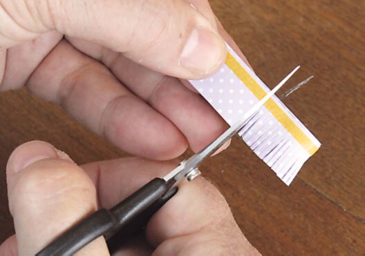 Nyní si v proužcích vyznačte řezy pro zkumavky. Na každém proužku střídavě proveďte 2 až 3 řezy.