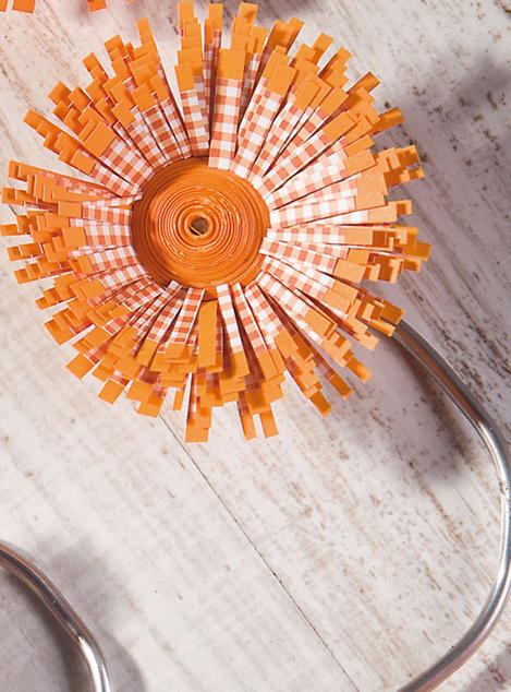 Nakonec můžete horkým lepidlem přilepit malé quillingové květy, do zkumavek nalepit velké quillingové květy nebo skutečné květy a naplnit je ozdobným štěrkem.