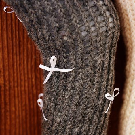 Tímto způsobem pleteninu dokončíte UzlíkováníVlnu jednou omotejte kolem kroužku a konec odstřihněte.
