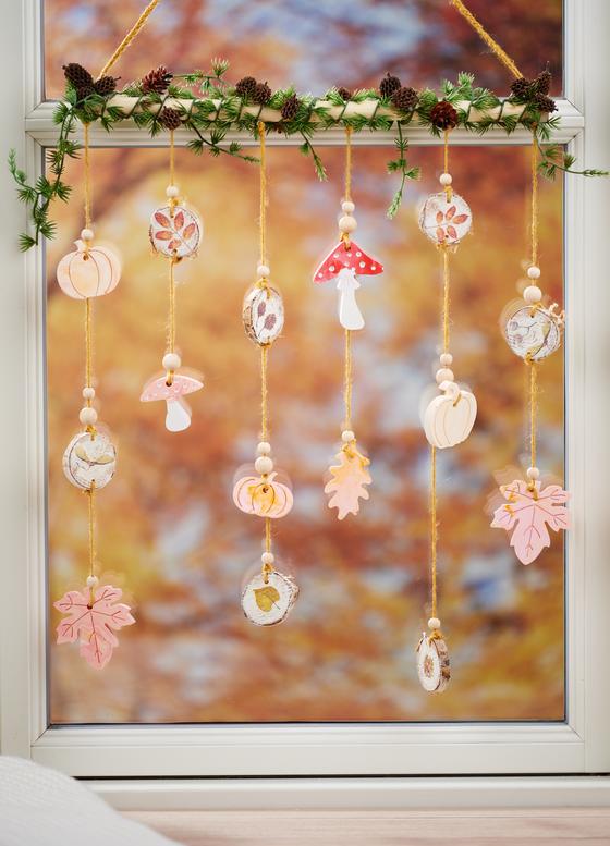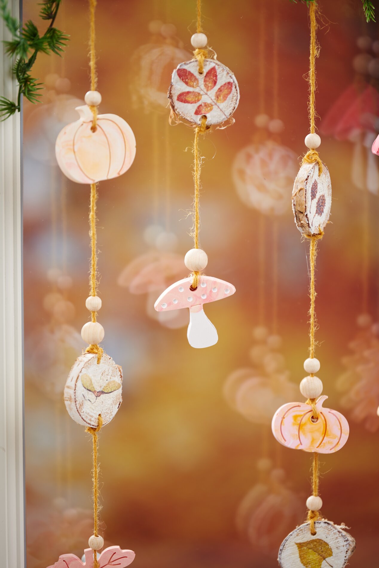Nakonec, jakmile navléknete požadované odlitky, můžete je zavěsit na očka na větvi a máte krásný dekorační nápad na podzim!