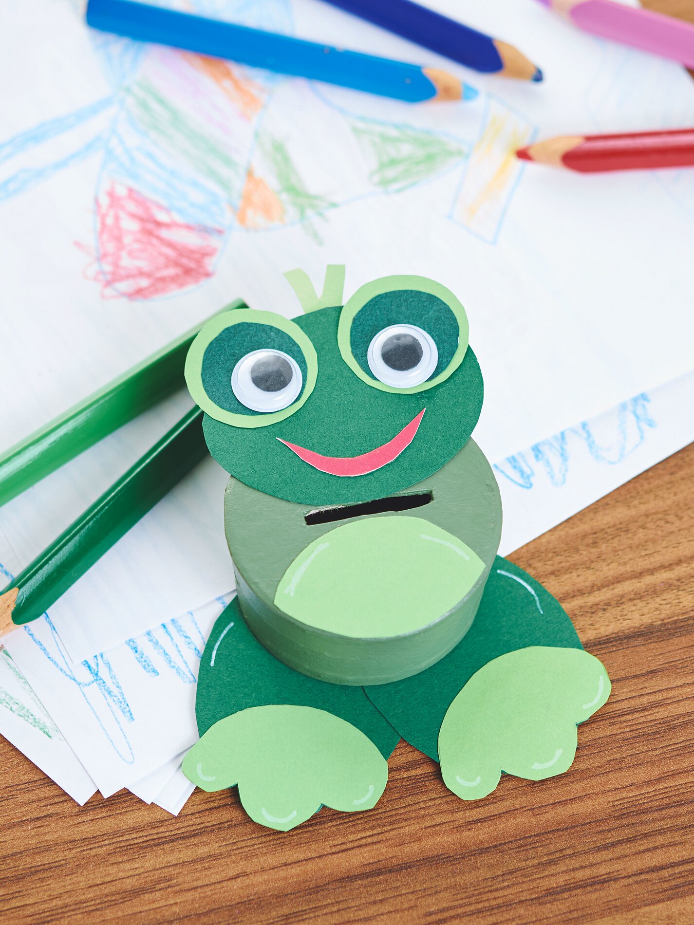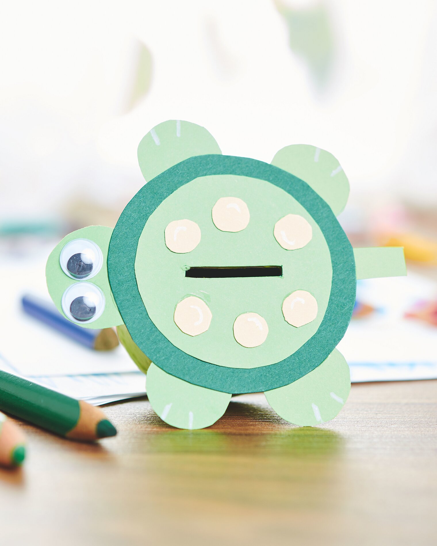 Jakmile barva zaschne, vyřízněte řemeslnickým nožem do víka každé papírové krabičky štěrbinu, kterou lze později vložit peníze. Velcí řemeslníci by s tím měli malým pomáhat.