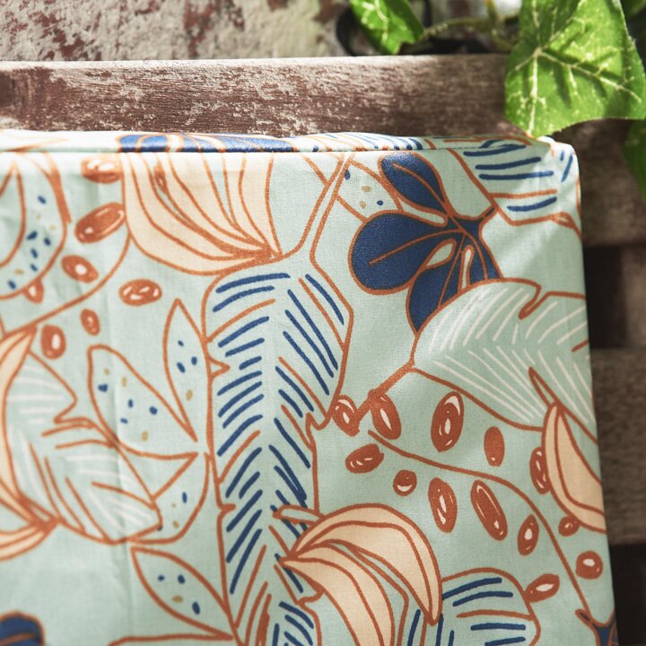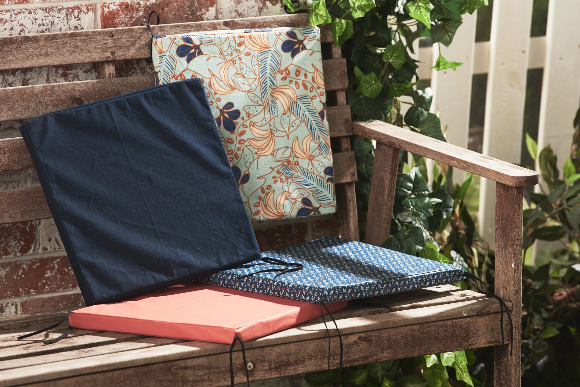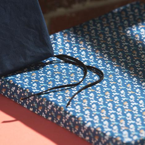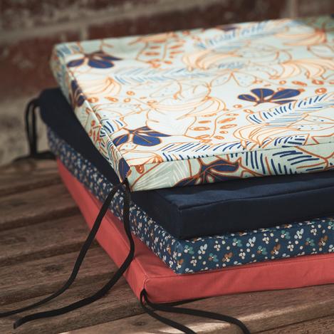Polštáře jsme ušili z potahových bavlněných látek. Díky polyakrylové povrchové úpravě jsou tyto látky na povrchu odpuzující nečistoty a vodu a na dotek jsou mírně pevnější. Jakoukoli látku však můžete potahovat i sami, a to aplikací TexWaxu. Modrá látka s květinami v naší animaci, která je již vyprodaná, byla proto v seznamu materiálů nahrazena alternativní látkou bez potahu.