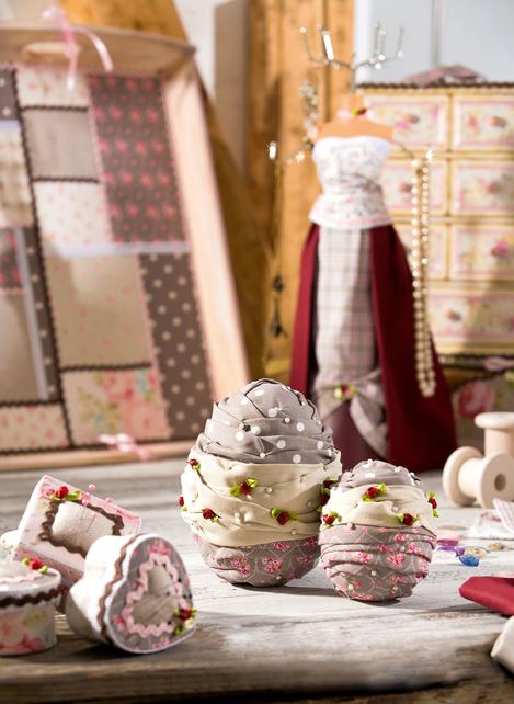 Po krátkém zaschnutí můžete mezi polotovary přilepit paličkovanou krajku a klikaté stuhy pomocí lepicí pásky.