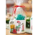 Tyto průhledné sáčky se základním kartonem (5 kusů) mají výšku cca 40 cm a průměr cca 12 cm. Balení obsahuje také 5 základních kartonů, zepředu ve zlaté barvě, zezadu ve stříbrné barvě , a 3 m saténové stuhy v červené barvě. Průhledné sáčky mají kosočtvercový záhyb.