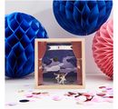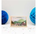 Oboustranně potištěné papíry s motivy pozadí a doplňky k vystřižení jsou určeny pro mnoho různých témat, událostí a příležitostí. Vytvářet lze nejen narozeninové a svatební scény, ale také pozadí pro divadlo a koncerty, grilování a zahradní slavnosti, různé sportovní akce, volnočasové aktivity, pláž a mnoho dalšího. Motiv pozadí se jednoduše vystřihne a vloží do krabičky na předměty nebo použije na přání. Různé předměty, které se hodí ke zvolené scéně, se také vystřihnou a některé se složí nebo nalepí. Vzniknou tak nádherné 3D efekty a působivé scény se spoustou zajímavostí.