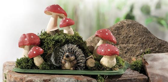 Nejprve natřete ozdobnou ceduli, která bude sloužit jako základní deska pro dekoraci, barvou mechově zelené. -Po zaschnutí desky se k ní horkým lepidlem připevní vhodný kousek suché lepicí hmoty a pokryje se mechem. -Stojanovou desku lze nyní ozdobit tak, že se otvory protáhne šachovnicová stuha a sváže se na mašli.