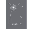 Vysoce kvalitní šablona " Wish" ve formátu DIN A5 se stěrkou, která je součástí balení. Nápis "Wish" je cca 6,5 cm dlouhý a cca 1,8 cm vysoký. Pampeliška má rozměry cca 4,5 cm x 15,7 cm, semínka pampelišky jsou dlouhá cca 2 cm a vysoká cca 1 cm.