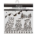 Vstupte do kouzelného světa nočních tvorů se šablonou" Soví dům - Sovy". Tato vysoce kvalitní šablona s okouzlujícím motivem sov na plotě obklopeném jedlemi, zasněženými horami a jiskřivou hvězdnou oblohou vnese do vašich kreativních projektů zimní kouzlo.