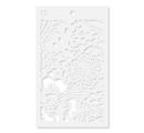 Se šablonou "Tulum" můžete popustit uzdu své kreativitě a navrhovat dekorace na míru. Šablona je 14,4 cm široká a 24,0 cm dlouhá a je vyrobena z polyethylentereftalátu (PET). Motiv zobrazuje různé květy a části listů.