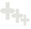 Šablony lze použít k tvoření dekorativních papírových domečků. Hotová velikost těchto domečků je cca 7 cm x 7 cm x 9 cm na výšku, délka 5,5 cm x šířka 5,5 cm x výška 7 cm a délka 4,5 cm x šířka 4,5 cm x 5,5 cm.