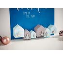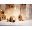 Do domečků lze malým otvorem v základně umístit LED světelný řetěz. Vystřihněte okna a do střechy vykrojte malé hvězdičky. To dodá domečkům další kouzlo.
