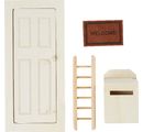 Dveře, poštovní schránka a žebřík jsou vyrobeny ze dřeva a lze je libovolně ozdobit řemeslnými barvami, třpytkami, dekorativním sněhem, pyrografií a dalšími prvky. V kombinaci s dalšími miniaturami, světelným řetězem a malými jedličkami vytvoříte zimní říši divů, která vás v předvánočním čase ohromí.