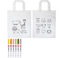 Dva bílé látkové sáčky mají rozměry přibližně 30 x 25 cm a jsou z jedné strany potištěny různými zvířátky. Obrysy usnadňují vybarvování šesti různými látkovými pastelkami. Po dokončení lze látkové sáčky ze 100% bavlny prát na 30 °C.