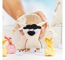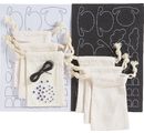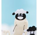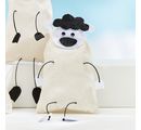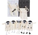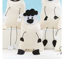 Při rozbalování najdete bavlněné sáčky, fólie z pěnové gumy v bílé a černé barvě, bavlněnou stuhu a pohyblivé očka . Fólie z pěnové gumy jsou potištěny motivy, které se jednoduše vystřihnou. Pohyblivá očka dodávají každé ovečce individuální charakter a bavlněná stuha slouží k tvoření rukou a nohou ovečky.