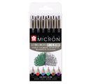 Sada Pigma Micron se 6 pery v barvách černé, červené, modré, zelené, hnědé a fialové. Pera jsou naplněna barevně sytým a světlostálým inkoustem, který neprosvítá přes papír. Jedná se o inkoust odolný vůči dokumentům.