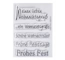 Razítka jsou vyrobena z fotopolymeru a dodávají se na podkladovém archu DIN A7. Fotopolymer má tu vlastnost, že je odolnější proti roztržení než silikon. S razítky můžete dosáhnout skvělých výsledků. Vánoční pozdravy jsou ideální pro váš design přání v době Vánoc.