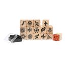 Sada obsahuje celkem 15 různých razítek. Razítka měří přibližně 2 x 2 cm a jsou vhodná i pro razítkování s dětmi.