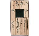 Krásná sada razítek XL "Grasses" , která se skládá z 12 razítek s motivy a 1 inkoustového polštářku. Razítka mají velikost motivu přibližně 3,7 cm až 7,8 cm.