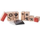Krásná sada razítek XL "Wildflowers" obsahuje 8 razítek s motivem o velikosti cca 1,2 cm až 3,8 cm a 1 inkoustový polštářek.
