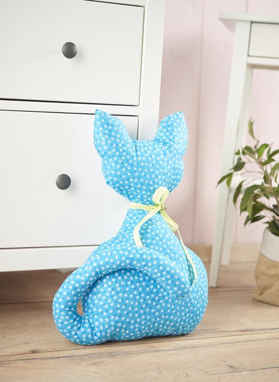 Sešijte oba kusy látky k sobě s výjimkou malého otvoru ve spodní části kočičího ocasu a poté je otočte na pravou stranu. Pomocí vycpávadla nebo obyčejné dřevěné lžíce se vám jistě podaří vycpat kočičí polštářek vatou tak, aby byl pevný na dotek. Nakonec stačí malý otvor zašít a kolem krku uvázat ozdobnou mašli. Malá přišitá rolnička dodá polštářku pro kočku tu jistotu.
