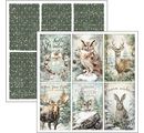 Ponořte se do kouzelného světa scrapbookového papíru "Forest Tales" a dejte průchod své kreativitě! Tento papír s nádherným motivem vás uchvátí jemnými odstíny zelené, béžové a hnědé a vypráví příběhy zasněžených lesů a jejich zvířecích obyvatel, jako jsou zajíci, orli, lišky a jeleni.