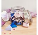 Malá stužka a malé dekorativní přívěsky nebo samolepky promění sklenice v jedinečné dekorace.