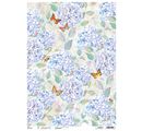 Slaměná nit s motivem "Vůně hortenzie " ve formátu A3 se skvělým motivem květů hortenzie, listů a motýlů v harmonických barvách. Nenatíraný papír má gramáž přibližně 28 g/m². Jedná se o lehký papír, který je mimořádně odolný proti roztržení a vodě a lze jej použít technikou decoupage. Papír pochází z kolekce "Enchanted Land" a lze jej dokonale kombinovat s papírem s motivy a silikonovými razítky z této kolekce.