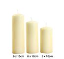 Sloupková svíčka má průměr Ø 6 cm a výšku 12 cm, což z ní činí ideální formát pro nejrůznější řemeslné projekty. Je vyrobena z vosku a má dlouhou dobu hoření.