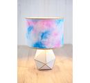 Toto robustní stínidlo je z obou stran vyztuženo kovovým kroužkem. Na jedné straně je připevněn bíle natřený kovový kříž s objímkou. Stínidlo lze použít pro stojací lampy a díky hladkému bílému povrchu nabízí mnoho designových možností. Může být potaženo látkou, pomalováno ručním nápisem nebo potaženo papírem, slaměným hedvábím či ubrousky. Vytvořte si vlastní individuální stínidlo s velmi osobitým designem.