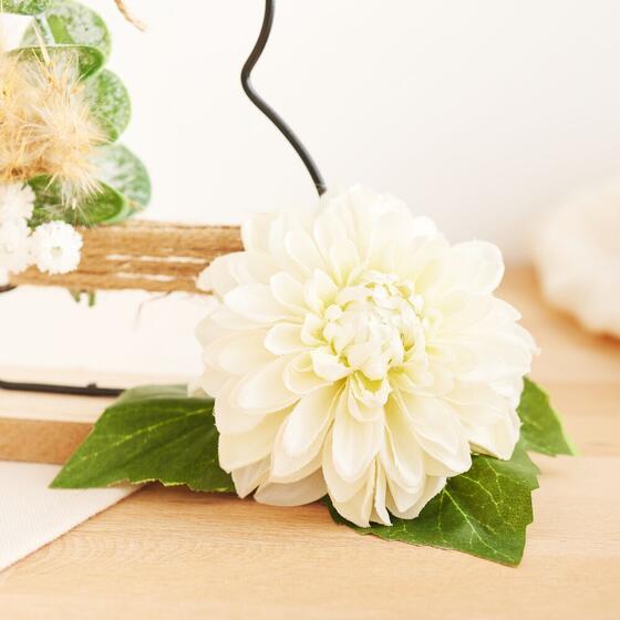Rostliny ozdobně zastrčte do jutové stuhy. Vyzkoušejte různá aranžmá, dokud nedosáhnete harmonického celkového vzhledu. Na místě je můžete také zafixovat několika skrytými kapkami horkého lepidla. Pokud chcete, přidejte k nové velikonoční dekoraci jako třešničku na dortu jednu větší květinu.