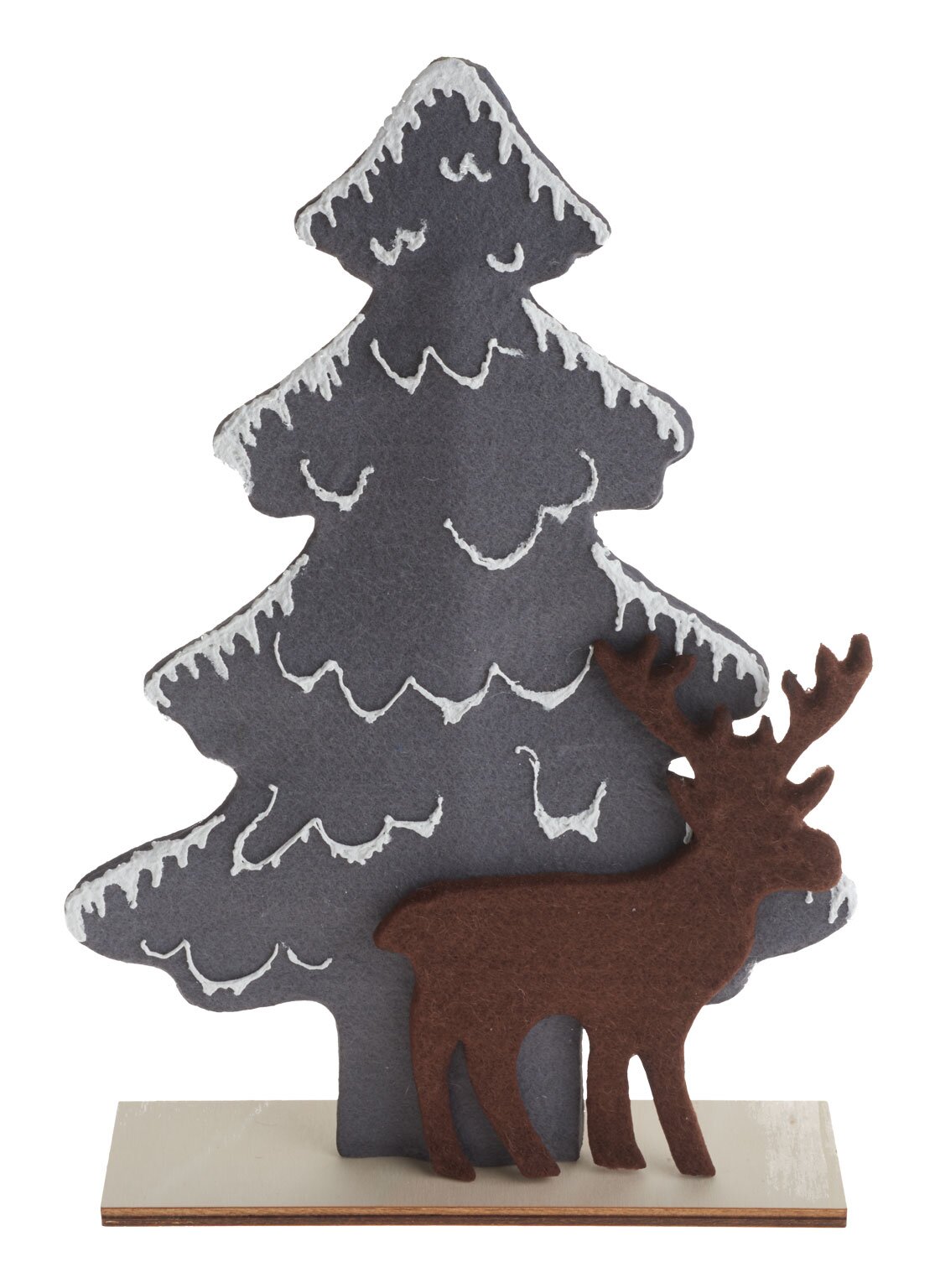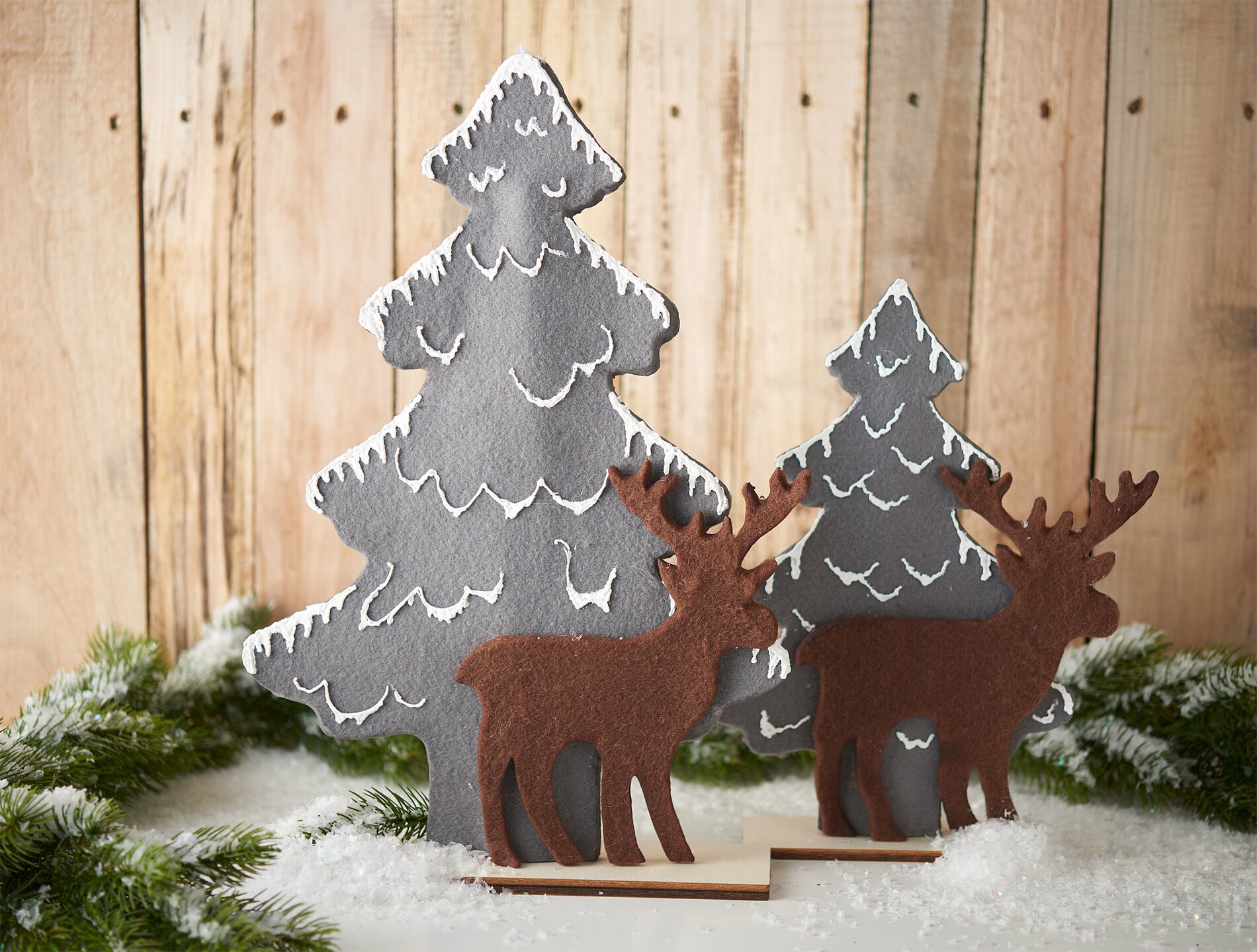 Před jedli přilepte vystřižené soby - a vánoční jedle se soby je hotová. Při aranžování na stole můžete filcovou figurku