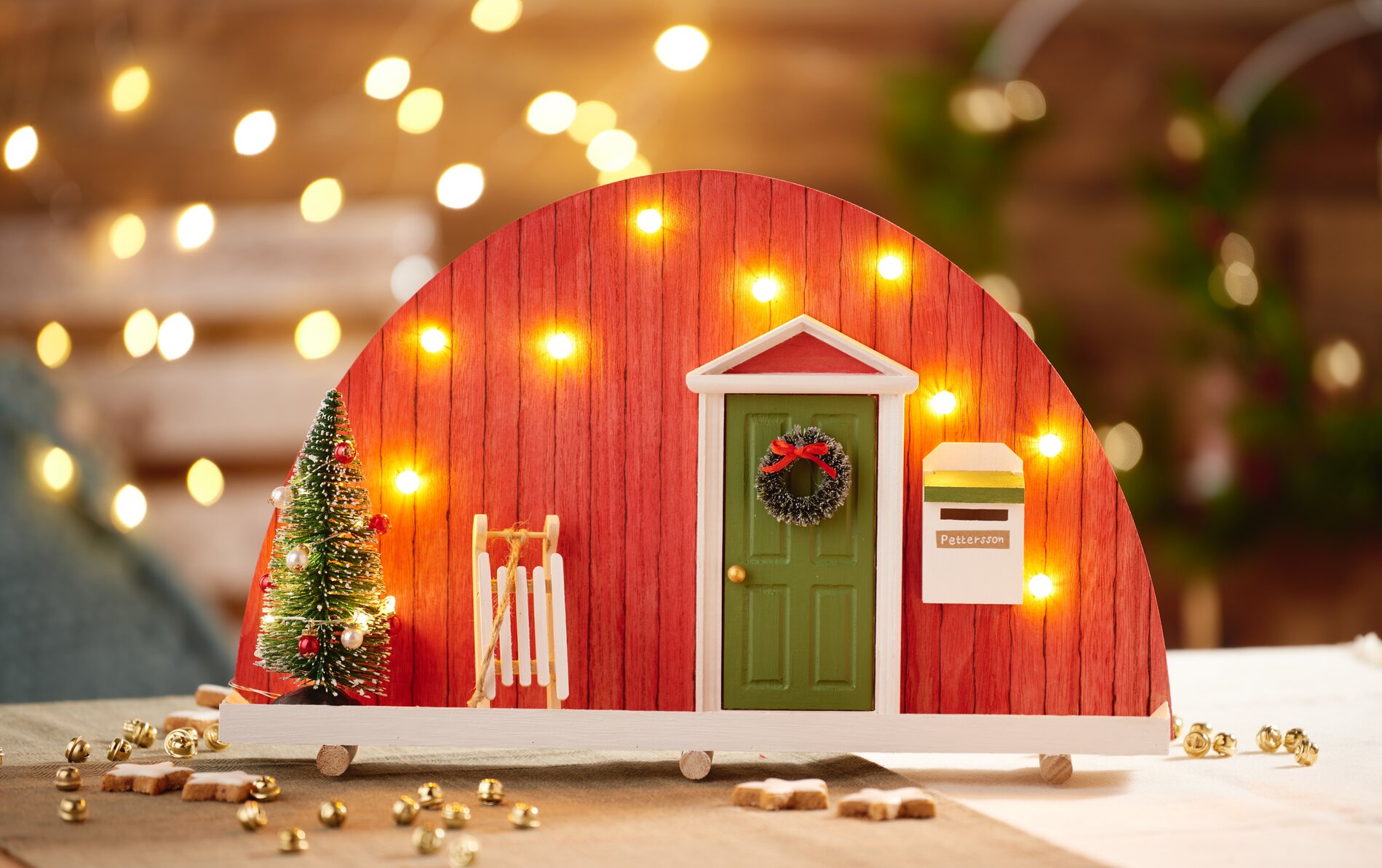 Nyní je čas na drobné detaily: natřete dveře Secret Santa, poštovní schránku a sáňky podle svých představ. Doporučujeme vánoční barvy, například červenou, zelenou a bílou. Po zaschnutí barvy připevněte pomocí řemeslného lepidla namalované části na určená místa na oblouku svíčky. Ujistěte se, že vše dobře drží.