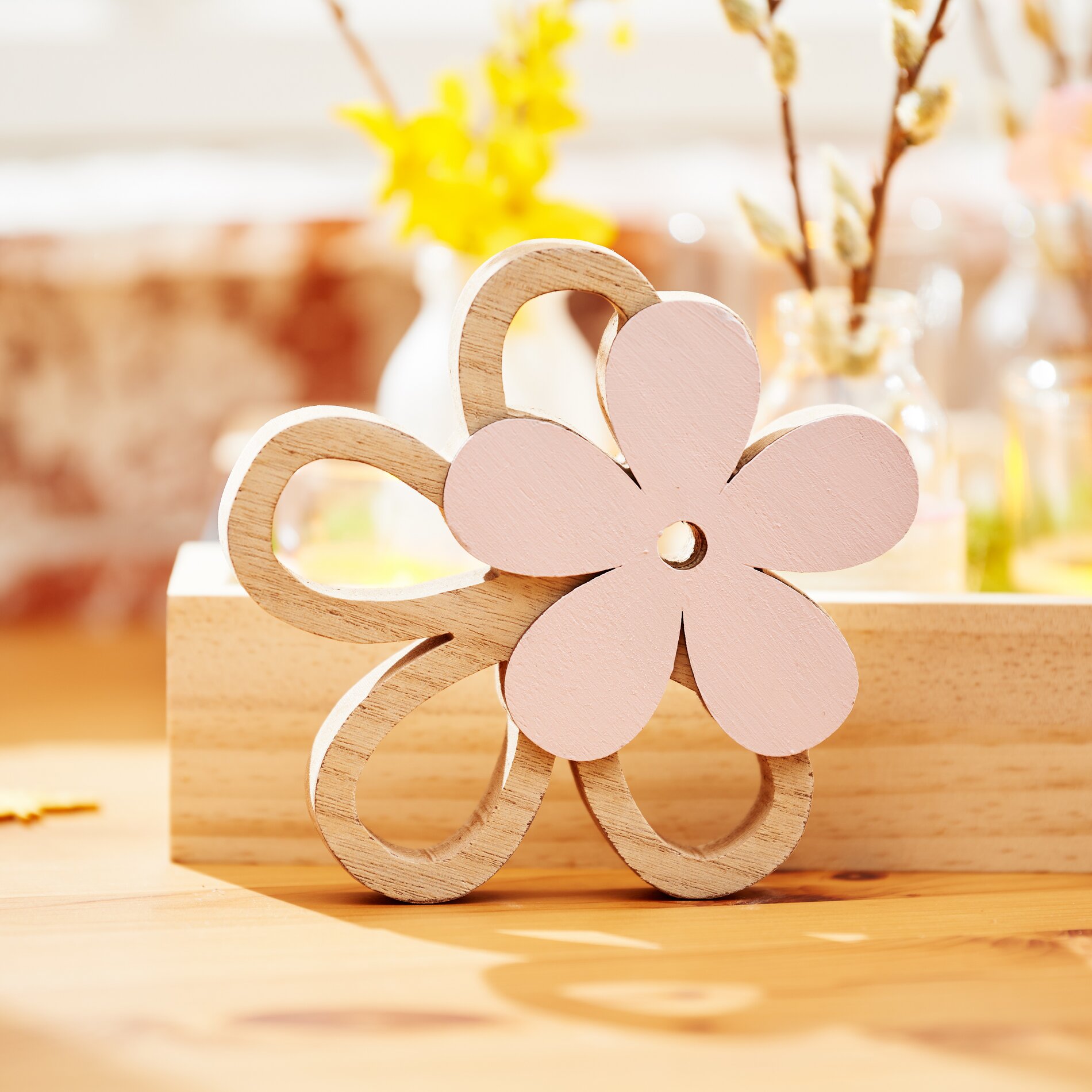 Začněte natíráním dřevěné květiny starožitnou růžovou barvou.