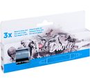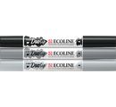 Talens Ecoline Duotip "černošedá sada" s barvami 738 světle studená šedá, 717 studená šedá a 700 černá. Tyto 3 barvy by neměly chybět ve vaší sbírce popisovačů Duotip. Zářivé barvy na bázi barviv a arabské gumy si vás získají. Popisovače obsahují koncentrovanou transparentní akvarelovou barvu a jsou vybaveny 2 různými hroty. Úzký kulový hrot použijte ke kreslení jemných detailů a širší klínový hrot k vybarvování širokých linií a větších ploch.
