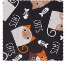 Látka s motivem "Kočky" v šířce přibližně 140 cm, v metráži s gramáží přibližně 170 g/m². Velikost motivu této látky je od 2,7 do 6,2 cm a materiál se skládá ze 70 % z bavlny a 30 % z polyesteru, lze prát při 30 °C na jemné prádlo.