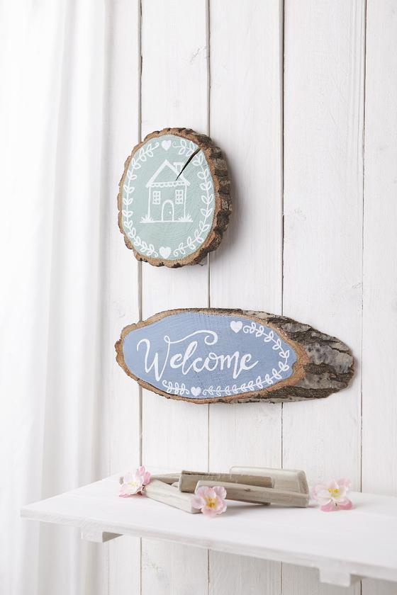 Abyste celému dílu dodali osobní nádech, můžete dřevěné disky ozdobit pěknými dekorativními prvky, jako jsou bordury, šipky nebo srdíčka.