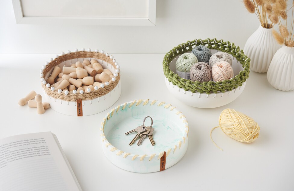Hledáte nový a vzrušující nápad pro svůj další kutilský projekt? Pak jsou tyto samolepicí misky s perforovaným okrajem a okrajem z makramé přesně pro vás! Tyto jedinečné dekorativní kousky jsou nejen praktické, ale lze je také úžasně všestranně navrhnout. Hotové kousky se skvěle hodí do vaší domácnosti nebo jako ručně vyráběné dárky pro milé přátele.