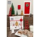 Zlatý vánoční stromek s vánočními ozdobami ve tvaru srdce, roztomilý sob, veselý sněhulák a věrný pes vytvářejí kouzelnou atmosféru. Jednostranný potisk a bílá zadní strana umožňují široké možnosti provedení.