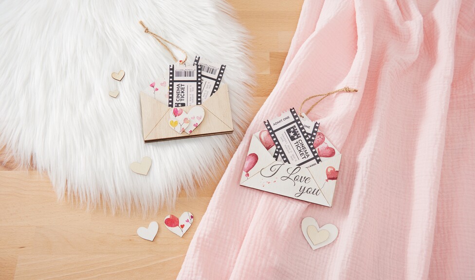 Nejdříve dřevěné obálky a posypky srdíček VBS "Mila" natřete bílou barvou. Než budete pokračovat, nechte vše dobře zaschnout. Bílá barva jako základní nátěr později zajistí, že motivy ubrousků dokonale vyniknou.