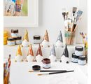 Barva na vodní bázi zasychá voděodolně a světlostálá. Je také bez zápachu a šetrná k životnímu prostředí. Můžete ji nanášet štětcem, houbičkou nebo štětcem na tupování a libovolně míchat, abyste si vytvořili vlastní barevné tóny.
