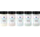 Sada VBS Chalky Color "Basic" obsahuje pět skvělých barev po 100 ml v barvách vanilka, starorůžová, nebeská modř, mořská zeleň a starošedá. Pro jedinečný shabby chic vzhled stačí barvu Chalky Color nanést na předmět ze surového dřeva nebo obroušený starý nábytek a získáte svěží barevný efekt.
